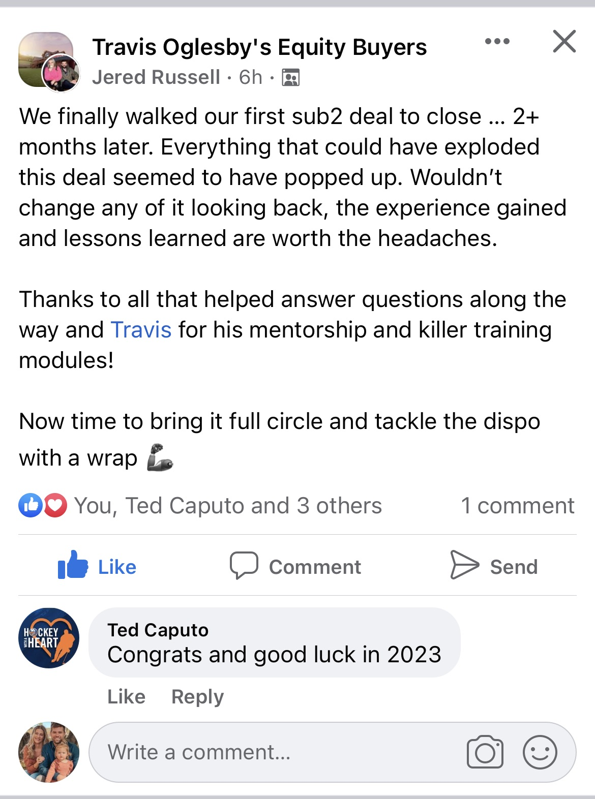 Our coaches will assist you in all areas of your REI business, and work through a creative deal with you. No other training program can offer that.